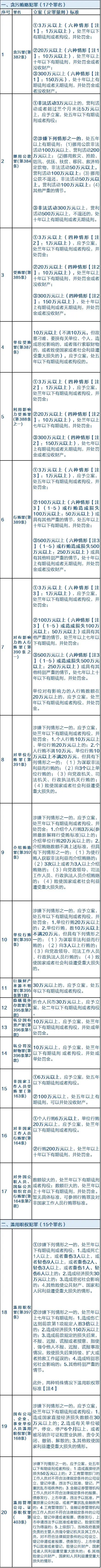 监察管辖88个罪名**新立案量刑一览表