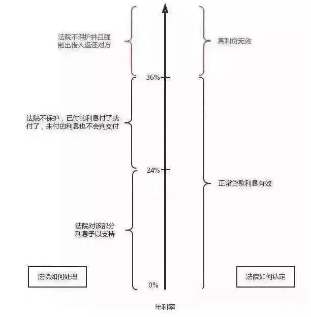 3、双方约定了借贷期限内的利息,没超过年利率24%的利息,法院会支持;超过年利率24%但没超过36%的这部分利息,属于法院放任不管的部分,如果借款人支付了,要求出借人返还,法院不会支持,如果借款人没支付,出借人要求借款人支付的,法院也不会支持;超过年利率36%的,法院不会支持。