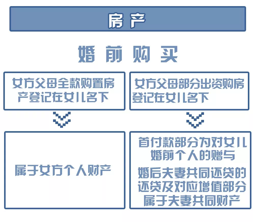 婚前:如果双方没有明确的夫妻财产约定,女方父母在婚前给女方的嫁妆(包括房产、车辆等财产),属于女方的婚前个人财产。不因婚姻关系的存续而转化为夫妻共同财产。